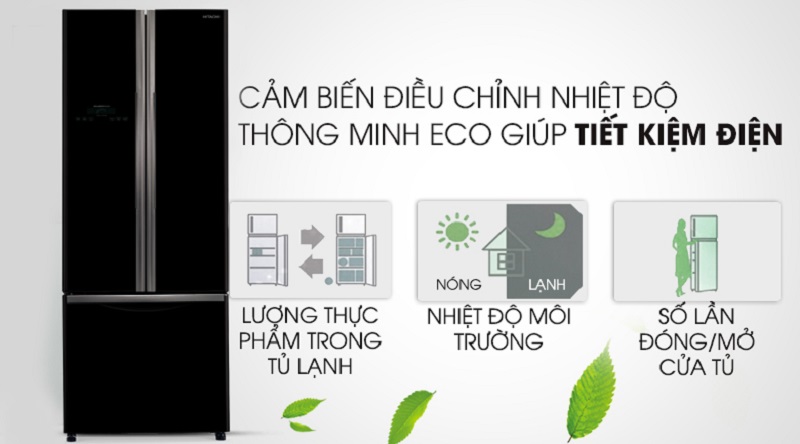 Bên cạnh tích hợp công nghệ hiện đại như trên, mẫu tủ lạnh Hitachi còn có khả năng nhận biết sự thay đổi nhiệt độ nhờ hệ thống cảm biến nhiệt Eco thông minh, nhằm linh hoạt điều chỉnh nhiệt độ lý tưởng ngay bên trong tủ, từ đó giúp làm lạnh hiệu quả và hỗ trợ tiết kiệm điện hơn.