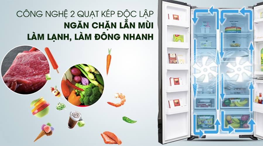 Được trang bị hệ thống làm lạnh quạt kép, Tủ lạnh Hitachii sẽ giúp bạn giải quyết được vấn đề lẫn mùi thực phẩm ở các ngăn với nhau triệt để và giúp làm lạnh nhanh hơn, duy trì ổn định nhiệt độ tốt hơn, bạn có thể dễ dàng điều chỉnh nhiệt độ ở mỗi ngăn vô cùng dễ dàng.