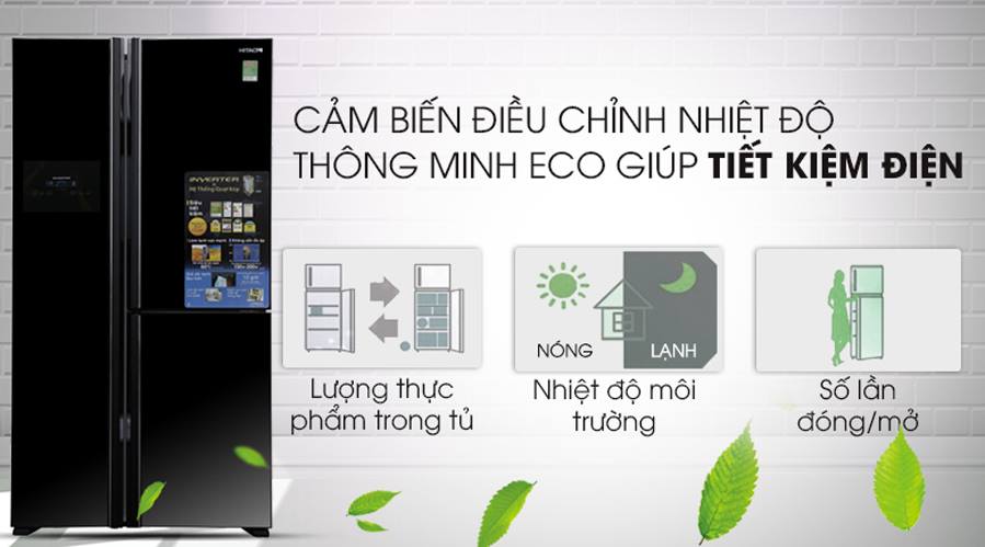 Để giúp cho bạn có thể tiết kiệm điện tốt hơn nữa thì, hãng Hitachi đã trang bị thêm cảm biến thông minh Eco trên chiếc tủ lạnh Inverter này. Với khả năng tự điều chỉnh nhiệt độ dựa trên nhiệt độ trong và ngoài tủ lạnh, tần suất hay hoạt động của tủ, từ đó điều chỉnh công suất làm việc phù hợp, tiết kiệm nhất cho bạn.