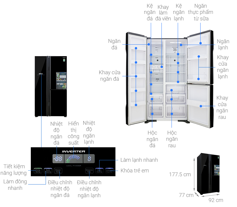 Tủ lạnh Hitachi Inverter 600 lít R-FM800PGV2 GBK là dòng tủ lạnh side by side hiện đại, sở hữu kiểu dáng bên ngoài sang trọng với phần tay được thiết kế nổi, cùng với đó là bảng điều khiển bên ngoài tăng thêm sự hiện đại lẫn tiện nghi khi sử dụng cho bạn. Ngoài ra, tủ còn có mặt gương phía trước, cùng các đường nét được chăm chút tinh tế giúp tăng thêm vẻ đẹp cho không gian nhà bạn.