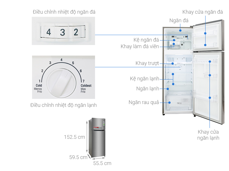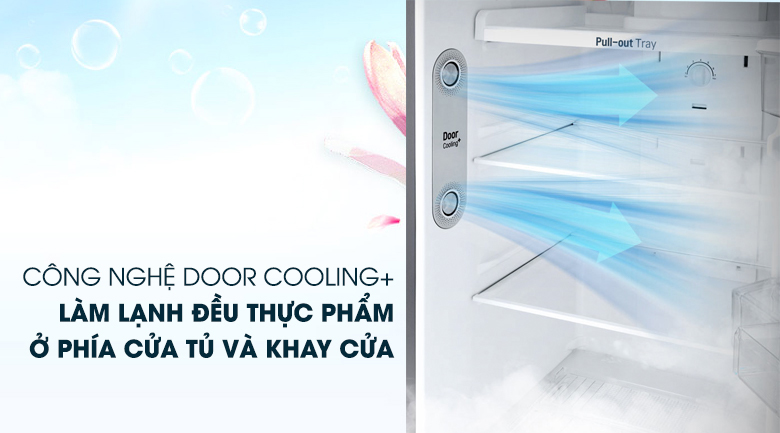 Tính năng DoorCooling trong tủ lạnh LG Inverter sẽ giúp cho nhiệt độ bên trong lan tỏa đều hơn và làm mát nhanh hơn đến 35% so với hệ thống làm mát thông thường. Hơn nữa, hệ thống này còn làm giảm đáng kể sự chênh lệch nhiệt độ giữa phần bên trong và phía cửa của ngăn mát.