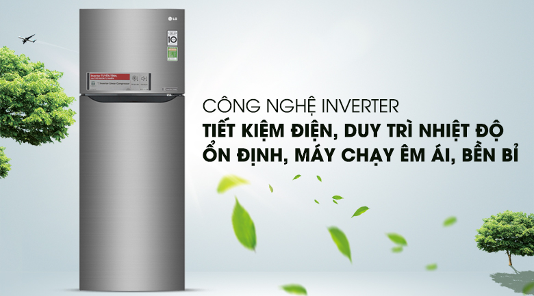 Tủ lạnh LG sử dụng công nghệ Inverter, giúp tiết kiệm năng lượng hiệu quả. Công nghệ này giúp loại bỏ các chuyển động thừa so với máy nén thông thường đảm bảo hiệu quả dẫn đầu thị trường; cho máy nén hoạt động êm ái và giảm thiểu tiếng ồn.