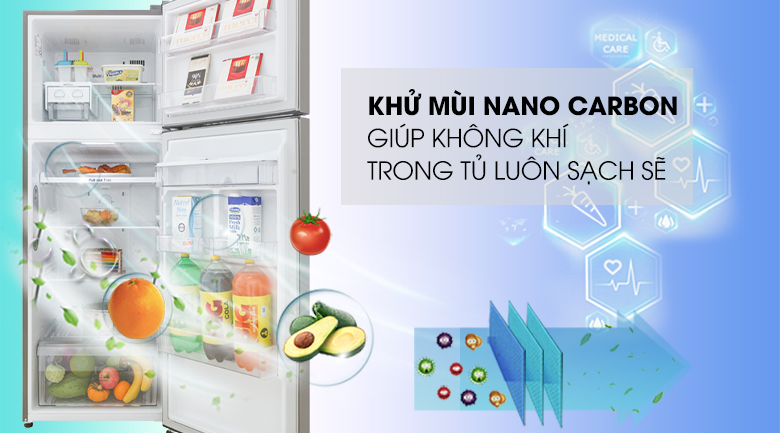 Với công nghệ khử mùi Nano Carbon, tủ lạnh sẽ luôn được trong lành, sạch khuẩn, đồng thời mùi vị của thực phẩm không bị lẫn vào nhau gây nên sự khó chịu, mang lại cảm giác thoải mái cho bạn khi sử dụng tủ lạnh và bảo vệ cho sức khỏe của gia đình bạn.