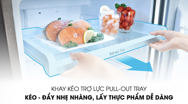 Tủ có thiết kế ngăn kéo trợ lực, cho phép người dùng có thể tháo rời lấy nhanh thực phẩm trong quá trình sử dụng. Thiết kế này, giúp tủ lạnh LG của gia đình bạn dễ dàng lấy thực phẩm mà không tốn quá nhiều sức