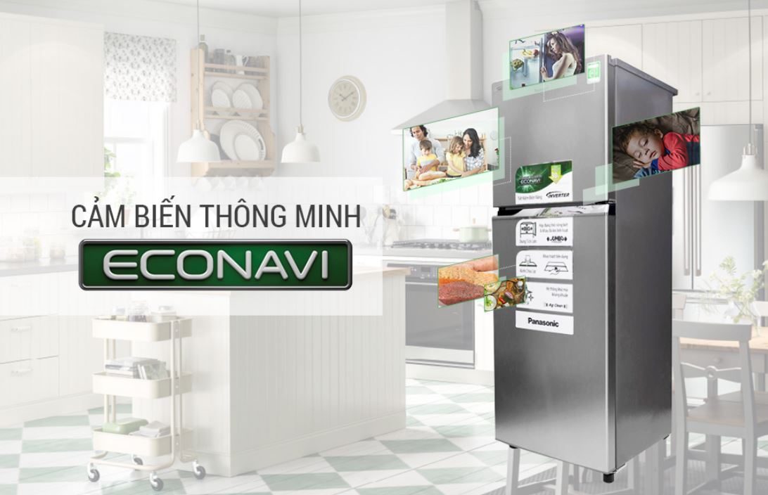 Tủ lạnh Panasonic Inverter 268 lít NR-BL300PSVN sử dụng công nghệ cảm biến Econavi thông minh với 3 loại cảm biến: cảm biến lưu trữ giúp nhận biết lượng thực phẩm được cất trữ trong tủ, cảm biến ban đêm giúp máy nén hoạt động ít hơn vào buổi tối khi không có người sử dụng và cảm biến thông minh có khả năng dự đoán thói quen sinh hoạt hàng ngày của gia đình để kiểm soát nhiệt độ hoạt động bên trong tủ cho phù hợp.