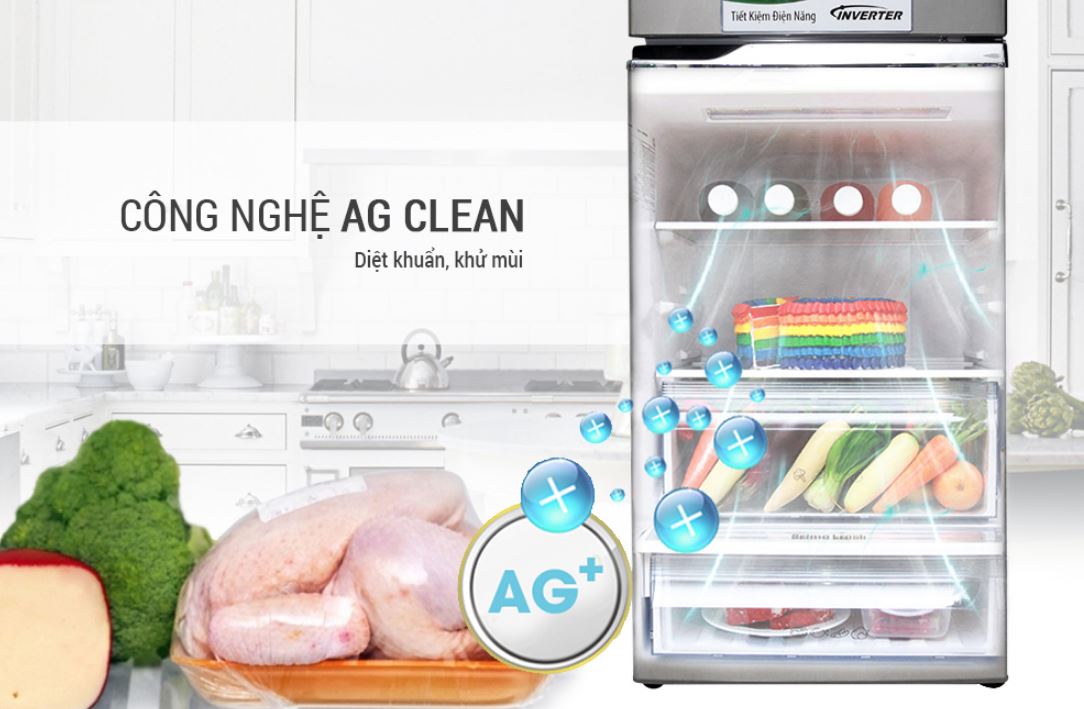 Tủ lạnh Panasonic Inverter 268 lít NR-BL300PSVN được trang bị công nghệ Ag Clean diệt khuẩn, khử mùi bằng các Ion Ag+ hiệu quả. 99% các vi khuẩn, nấm mốc sẽ bị các ion này tiêu diệt sạch sẽ, những mùi hôi do vi khuẩn sinh ra cũng sẽ không còn, đảm bảo không khí trong tủ lạnh luôn được tinh khiết và thực phẩm luôn được giữ vệ sinh cao.