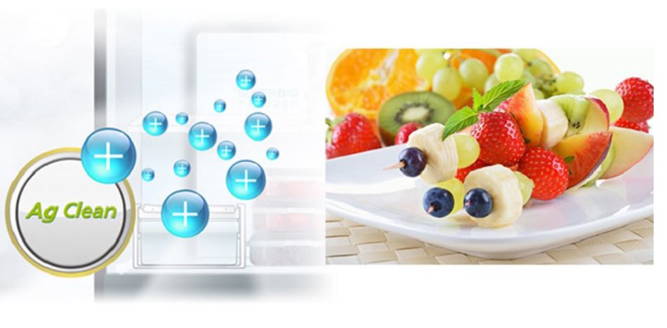 Tủ sử dụng công nghệ kháng khuẩn Ag Clean là công nghệ sử dụng các ion bạc Ag+ trong quá trình kháng khuẩn và khử mùi bên trong tủ lạnh giúp thực phẩm tươi sống giữ được tươi ngon và không bị biến chất trong thời gian dài, bảo vệ sức khỏe cho gia đình bạn. Giờ đây nỗi ám ảnh về mùi hôi khó chịu trong tủ lạnh hoặc thực phẩm bị lẫn mùi vào nhau sẽ không còn khiến bạn phải lo lắng và bận tâm nữa.
