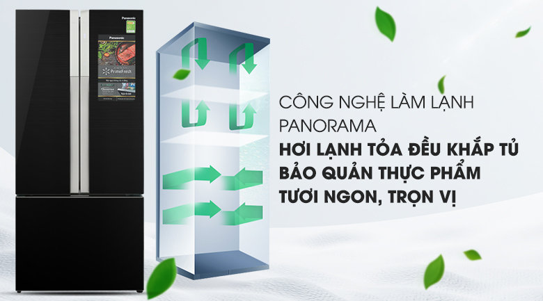 Công nghệ làm lạnh Panorama được tích hợp trên tủ lạnh Panasonic mang đến luồng khí lạnh đa chiều mạnh mẽ, len lỏi đến từng ngóc ngách để đảm bảo mọi thực phẩm đều được làm lạnh đồng đều. Nhờ đó, thực phẩm luôn được bảo quản và giữ được độ tươi ngon.
