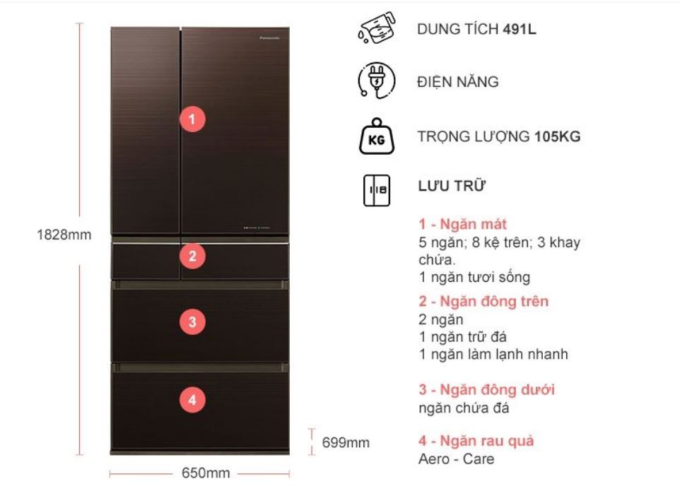 Tủ lạnh Panasonic Inverter 491 lít NR-F503GT-T2 với kiểu dáng 6 cửa sang trọng và đẳng cấp sẽ tô điểm thêm cho không gian nội thất của gia đình bạn vẻ đẹp tinh tế, hiện đại. Bên cạnh đó chiếc tủ lạnh Panasonic 491 lít này chính là một sự lựa chọn đáng cân nhắc cho gia đình 4 - 5 thành viên.