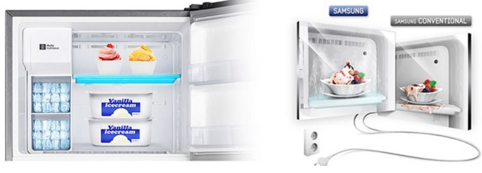Tủ Lạnh Inverter Samsung được thiết kế ngăn chứa lớn, giúp người dùng có thể thoải mái thưởng thức nhiều loại nước giải khát với cánh tủ được thiết kế sâu rộng hơn. Không những chứa đủ những bình sữa và nước trái cây lớn ở ngay ngăn cửa, ngăn chứa lớn còn có khay đựng có thể đựng các loại đồ uống đóng chai dáng cao loại 2 lít. Hiện đại hơn, thiết bị còn cấu tạo tấm giữ nhiệt Mr Coolpack, dùng trong trường hợp khi mất điện, giúp tủ có thể duy trì thực phẩm đông lạnh dưới 0°C lên đến 1 giờ và giúp giữ nhiệt độ mát lạnh tối ưu lên đến 8 giờ đảm bảo thực phẩm không bị hư hỏng.