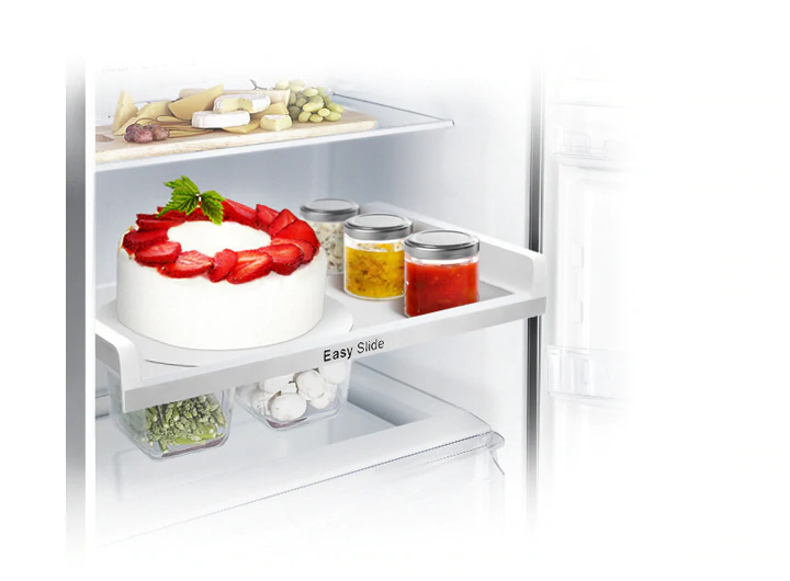 Khay kệ của tủ lạnh Samsung RT25HAR4DSA/SV được làm từ kính chịu lực, kết hợp với dạng kéo trượt, sẽ mang đến sự thuận tiện cho bạn khi sắp xếp thực phẩm để bảo quản và dễ dàng lau chùi, làm vệ sinh.