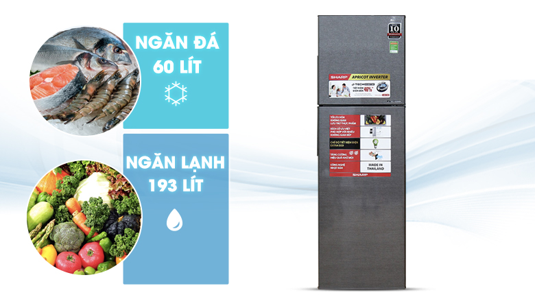 Đi cùng dung tích 253 lít, chiếc tủ lạnh Sharp này giúp đáp ứng hoàn hảo cho nhu cầu sử dụng của gia đình có 2 - 3 thành viên.Đi cùng dung tích 253 lít, chiếc tủ lạnh Sharp này giúp đáp ứng hoàn hảo cho nhu cầu sử dụng của gia đình có 2 - 3 thành viên.