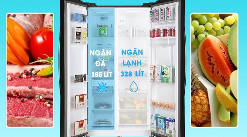 Khả năng lưu trữ thực phẩm nhiều với dung tích 493 lít, trong đó ngăn đá chiếm 165 lít và ngăn lạnh chiếm 328 lít, tủ lạnh Toshiba GR-RS637WE-PMV(06)-MG là một trong những lựa chọn phù hợp cho những hộ gia đình có trên 5 thành viên, hoặc ít hơn nhưng lại có nhu cầu bảo quản thực phẩm nhiều mỗi ngày.