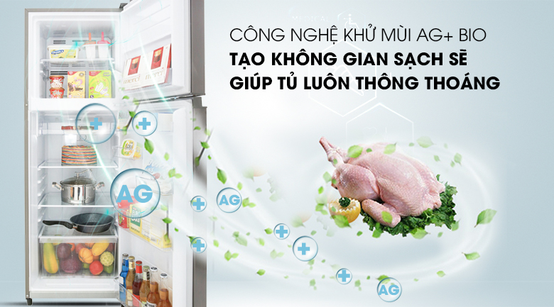 Nhằm hạn chế tối đa các mùi hôi khó chịu của các thực phẩm còn ám lại trong tủ, thì trên chiếc tủ lạnh Toshiba Inverter này đã có thêm Công nghệ khử mùi Ag+ Bio loại bỏ hoàn toàn các mùi hôi, nấm mốc, bụi bẩn ra khỏi tủ lạnh của bạn.