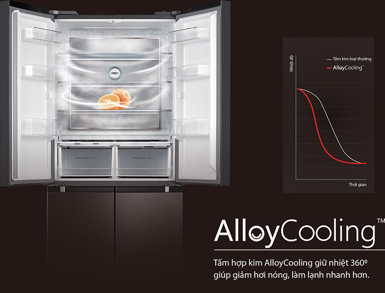Tủ lạnh Toshiba Inverter 511 lít GR-RF610WE trang bị tấm hợp kim Alloy Cooling giữ nhiệt nằm phía sau của tủ lạnh giúp xua tan hơi nóng, làm lạnh nhanh hơn. Đồng thời, tấm giữ nhiệt này sẽ giúp duy trì nhiệt độ lâu hơn khi mất điện.