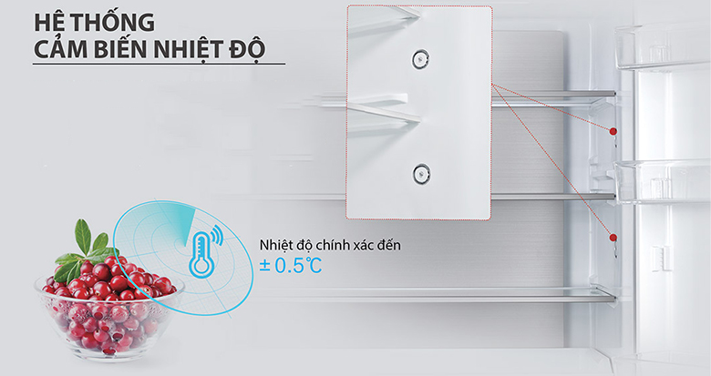 Một vũ khí bí mật vô cùng lợi hại bên trong chiếc tủ lạnh Toshiba cao cấp này đó chính là “Hệ thống cảm biến nhiệt độ” - tự động nhận biết nhiệt độ thay đổi bên trong dựa vào nhiệt độ thực phẩm và truyền tín hiệu đó đến thiết bị, từ đó máy nén sẽ điều chỉnh vòng quay, kịp thời điều chỉnh nhiệt độ phù hợp, ngăn chặn sự biến đổi nhiệt độ bất thường làm hỏng thực phẩm.