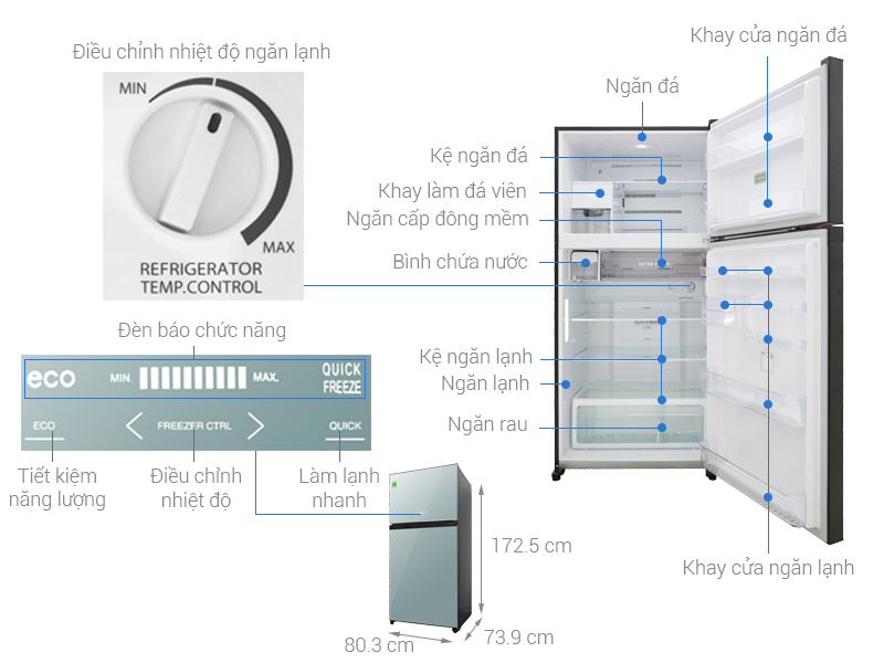 Ngoài ra, tủ lạnh Toshiba còn có chế độ tiết kiệm điện Eco mode giúp tối ưu hiệu quả tiết kiệm điện mà thực phẩm vẫn tươi ngon.
