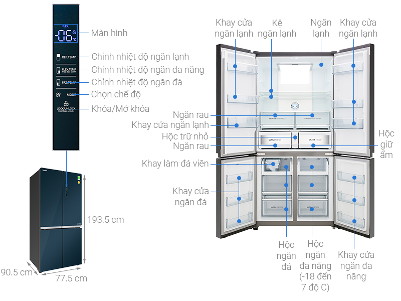 Không chỉ vậy, tủ lạnh còn được trang bị lên đến 26 ngăn chứa riêng biệt cùng khay kệ linh hoạt, cho phép bạn thuận tiện và dễ dàng hơn trong việc sắp xếp thực phẩm để bảo quản.