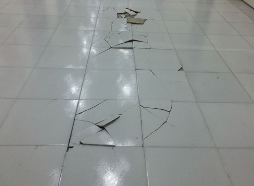 Ngoài ra còn xuất hiện các vết nứt trên nền gạch, bờ tường