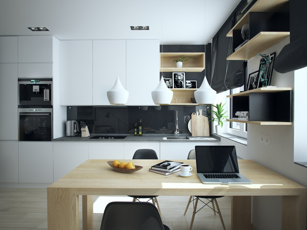 Không thể phủ nhận hai tông màu đen trắng rất phù hợp với các thiết kế hướng tới sự hiện đại, trẻ trung. Xu hướng kết hợp hai màu này cũng rất phù hợp để phối màu tủ bếp.