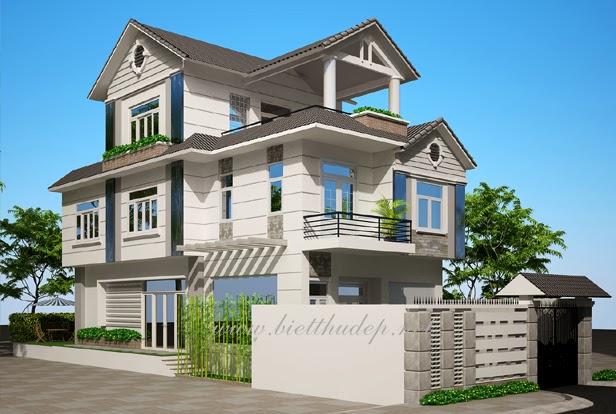 Ngôi nhà biện thự với thiết kế 3 tầng lầu.