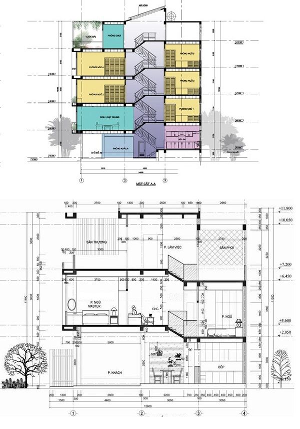 + Làm nhà lầu lệch tầng thường có thiết kế yêu cầu kỹ thuật cao: Những căn nhà lệch tầng 2 mặt tiền hay 1 mặt tiền có kiến trúc thường phức tạp, yêu cầu kỹ thuật cao trong cả thiết kế và thi công mới có thể đảm bảo tận dụng tốt các khoảng không gian nhà hẹp và đảm bảo nguồn sáng, sự sống tự nhiên cũng như tránh một số những nguy hiểm cho người sử dụng không gian kiến trúc này. Vì vậy, các kiến trúc sư sẽ phải tốn nhiều công sức để có được bản vẽ autocad nhà lệch tầng chi tiết.