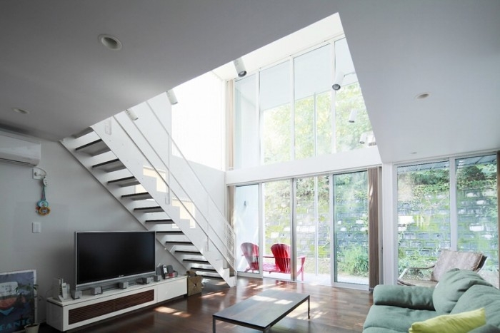 Ngoài ra ánh sáng tự nhiên cũng giữ vai trò đặc biệt quan trọng trong thiết kế nhà ở theo phong cách tối giản qua các cửa sổ, giếng trời,..
