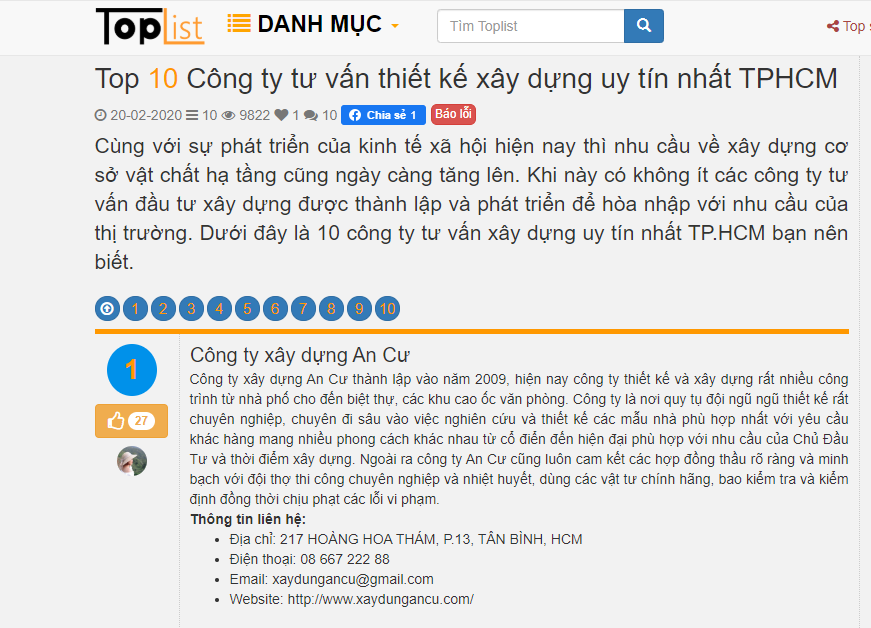 Cùng với sự phát triển của kinh tế xã hội hiện nay thì nhu cầu về xây dựng nhà ở và cơ sở vật chất hạ tầng cũng ngày càng tăng lên. Khi này có không ít các công ty tư vấn thiết kế thi công xây dựng được thành lập và phát triển để hòa nhập với nhu cầu của thị trường. An Cư được hình thành 2009 là đơn vị tiên phong về mảng nhà phố biệt thự, với đội ngũ quản lý có trình độ và giàu kinh nghiệm, hiện đã được rất nhiều trang báo cộng đồng quan tâm chia sẻ và đánh giá cao, dươi đây là 1 vài trang để quý vị tham khảo