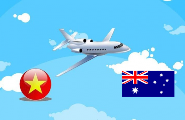 Tại Úc hiện có hơn 600 sân bay lớn nhỏ hoạt động tấp nập mỗi ngày, với sân bay quốc tế Kingsford Smith – Sydney là sân bay đông khách nhất nước Úc với ba đường băng và ba nhà ga. Thông thường thời gian bay từ Việt Nam sang Úc mất ít nhất 24 giờ. Tại nước ta có hai sân bay quốc tế là sân bay Nội Bài (Hà Nội) và sân bay Tân Sơn Nhất (TP.HCM) khai thác các chuyến bay giữa Việt Nam và Úc.